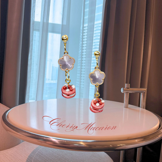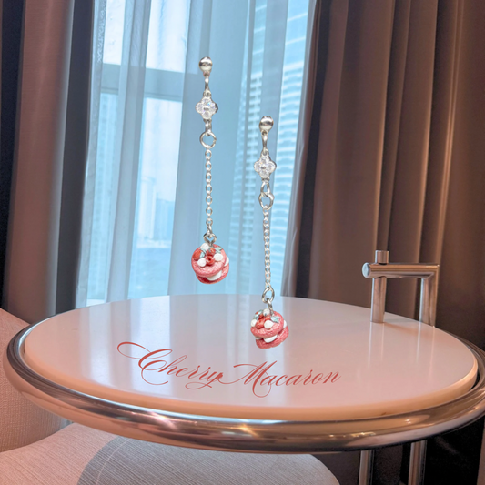 Cherry Macaron Drop Earrings (Silver)