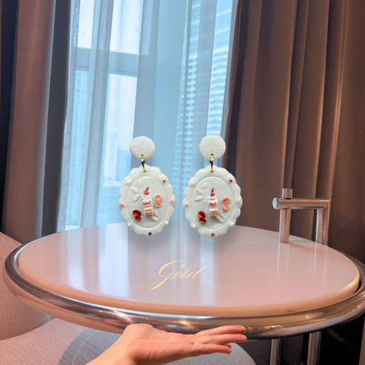 Strawberry Milk Cake Drop Earrings (Gold)