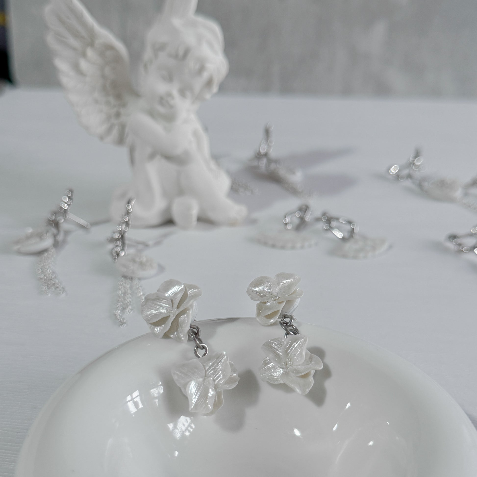 Iris Gemini New Dawn Stud Earrings is a pair of earrings assembled with 925 silver metal parts. This is a collection about starting anew with a fresh new year with life. The design has textured nature that represents life and white as purity. Starting anew with a clean slate!
