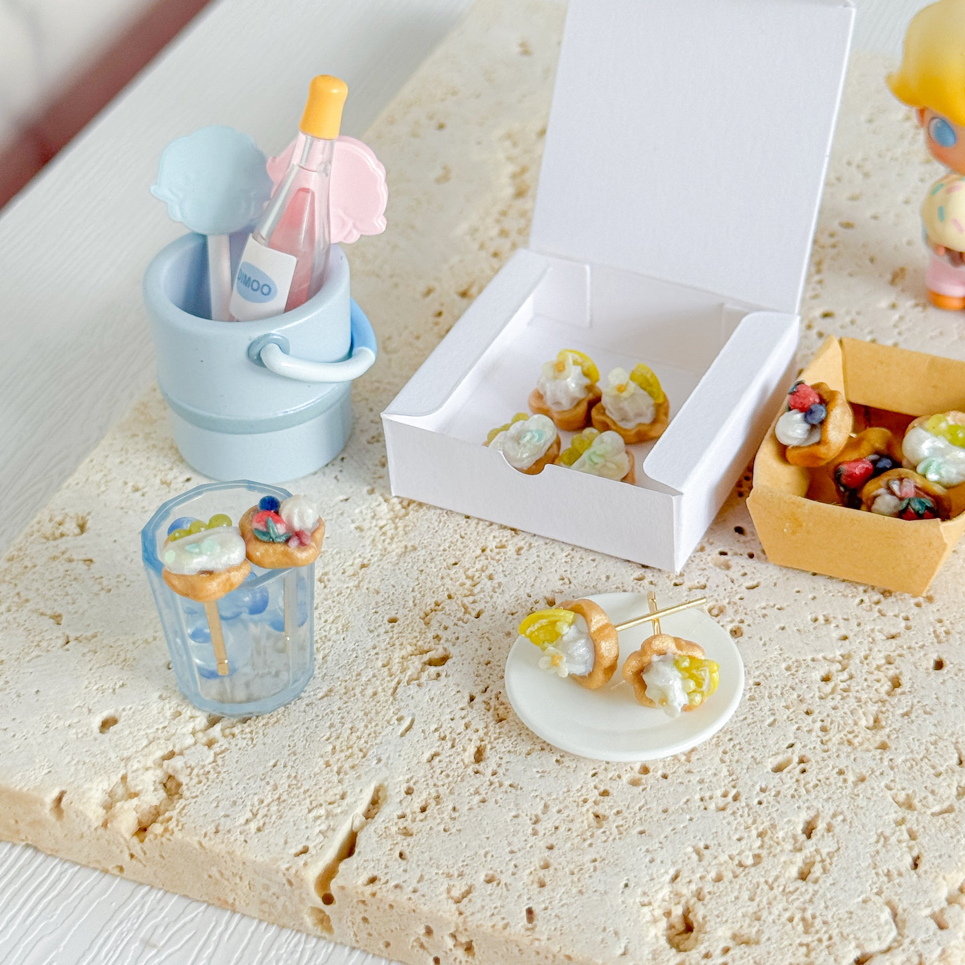 Lemon Meringue Tart Stud Earrings are carefully handcrafted and finished with 14K gold-plated hardware, bringing a refined touch to a whimsical, dessert-inspired design. Each stud resembles a miniature tart filled with soft cream and topped with a bright lemon slice, capturing the fresh, airy essence of a classic lemon meringue treat.